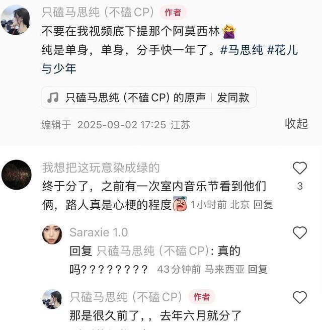 张曼乐本名张哲轩,两人的恋情于2021年3月首次曝光,两人最迟在2021年3月23日已确认恋爱关系。2021年8月,两人同游云南并见家长,引发结婚猜测。2022年起多次传出领证传闻,但均未获官方证实。2025年2月曾传出分手消息,但6月又被拍到复合迹象。 想当初他俩恋情曝光时,就因张曼乐黑历史一堆,全网都在喊马姐快跑,这几年,马思纯深陷恋爱脑,即便张曼乐被扒出各种黑料,比如节目上张狂怼人、私生活混乱,她也不为所动,还多次公开维护男友。 如今若真分手,只能说马思纯终于清醒了。从她近期积极营业的状态来看,分手或许真是个新的开始,期待她早日走出情伤。